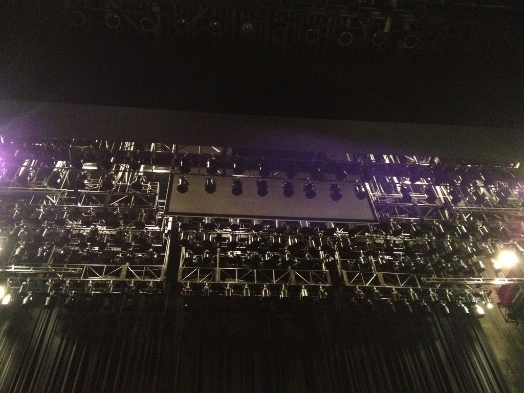 赤坂BLITZのステージの上はこんな感じになっています。沢山の鉄骨で組まれたトラスやバトン。ここに照明や舞台のセットなどを吊るします。学内ホールDOSでも同じような仕組みにはなっていますが、やはりBLITZはスケールが違います!今年のOVER HEATではどんなステージが組まれるのでしょうか?