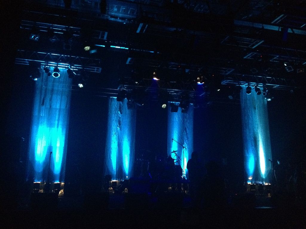 4枚の幕に青い照明がキレイに映えます。これがライブ本番ではいろんな色に染まります!