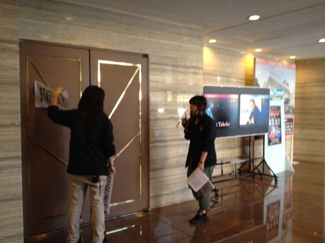 制作周りも、お客さんの誘導の練習をしたり、注意書きを貼ったり、ホールの準備をしていきました。