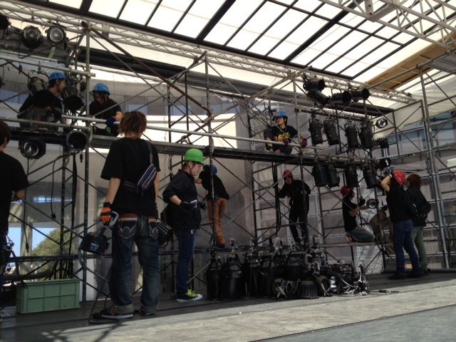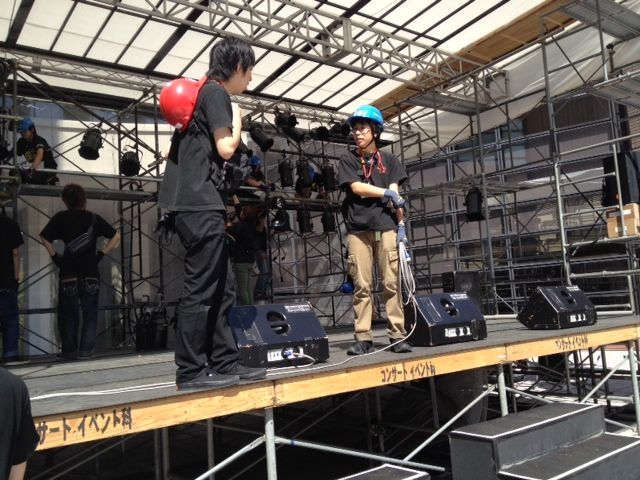 また、野外イベントスペースでは、舞台チームが先日設置したステージに、照明・PAが機材を仕込みをしました。