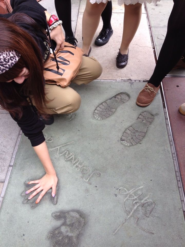 ここハリウッドのチャイニーズシアターと言えば人気俳優やエンターテインメントに貢献した人々の、手形や足形で、おなじみですね。マリリンモンローやジョニー•デップ、キアヌリーブス...沢山のスターたちの手形を見つけて、自分の手と合わせてみたりと、皆楽しそうでした