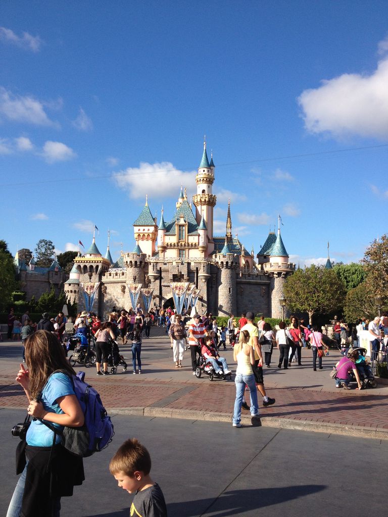 ここロサンゼルスにあるディズニーは、ディズニーランドとカリフォルニアアドベンチャーというふたつのパークに分かれています。日本のディズニーもここを基準に作られている為、乗り物は日本でもおなじみのものが多いです。ただ東京ディズニーランドのシンボル、シンデレラ城は、ここだと眠れる森の美女のお城なんです。ちょっと小振りで色も薄いピンク色で可愛らしい感じです