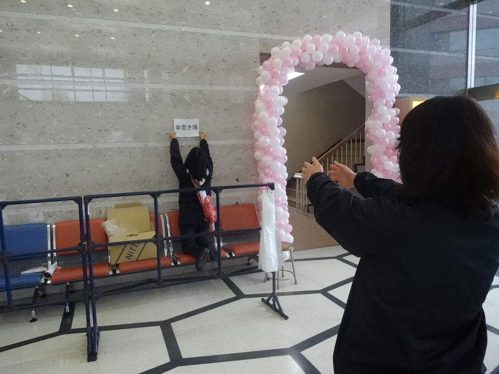 制作チームは、ブログやTwitter、会場の貼紙などで時間変更の対応に追われながらも、この日の為に考えたイベント装飾を協力して行いました。