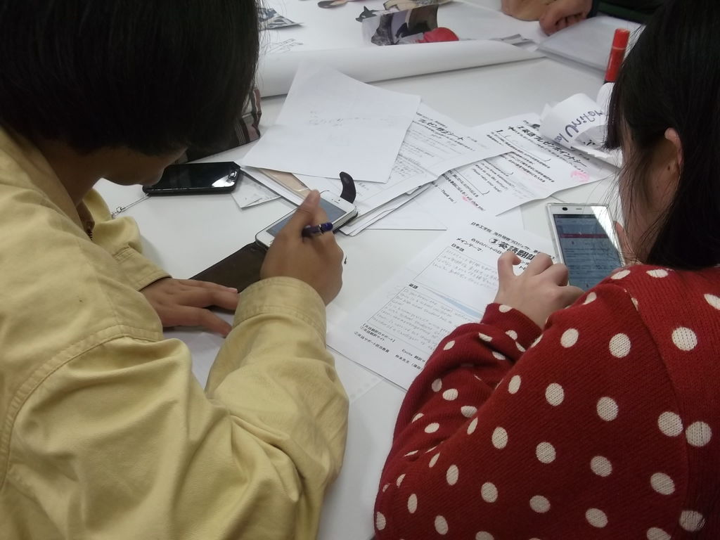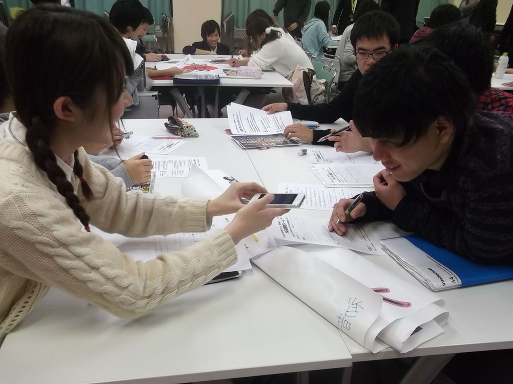 英語翻訳も学生たちみんな工夫をして、携帯電話やスマートフォンの翻訳機能を利用して発音など確認していました。早速文章ができると、読み合わせして発表さながら練習したり、積極的に作業をしていました(^^)