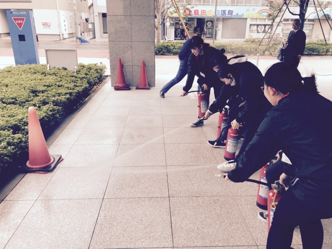 今まで消火器を触ったことがない学生も多く刺激の多い訓練になりました。