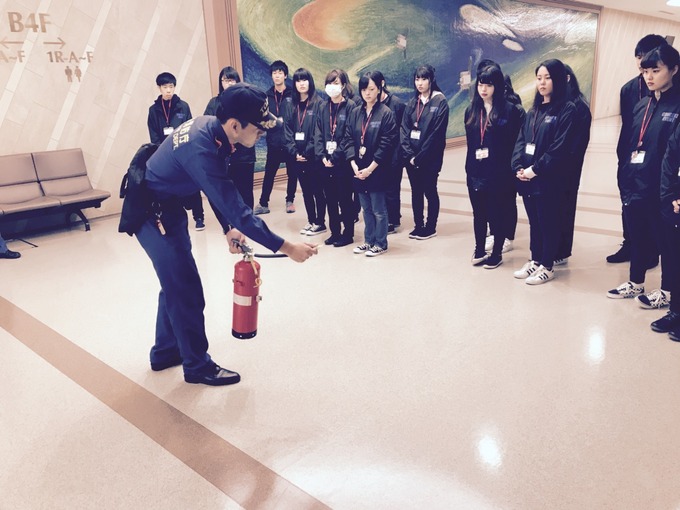 「火事だー!!」と大きな声を出す練習も行い、消火器も使用方法もレクチャーを受けました。