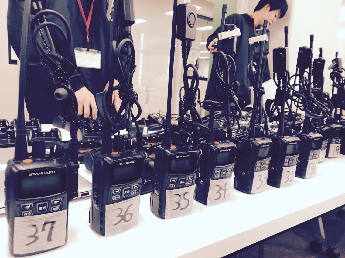 下の写真は、トランシーバーの動作チェックの図です。制作コースだけでも、かまた祭期間中30台使用します。