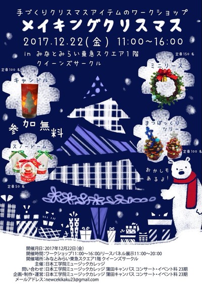 クリスマスアイテムを作るワークショップを開催する予定です