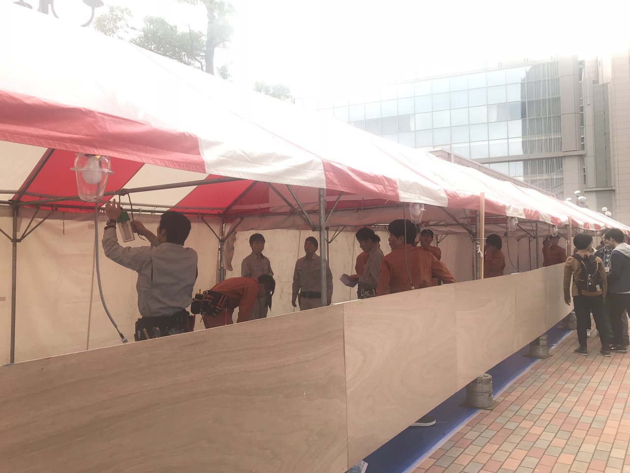 模擬店のテントの設営が始まっていました。