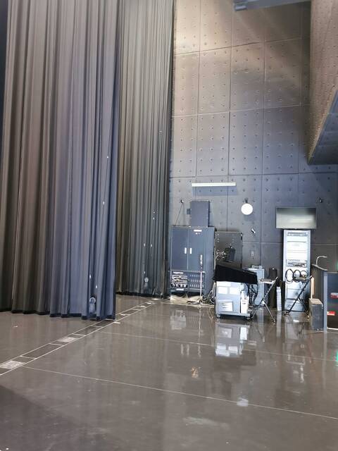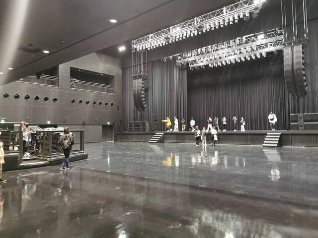 舞台、楽屋、会場の裏側などの紹介を受けながら、