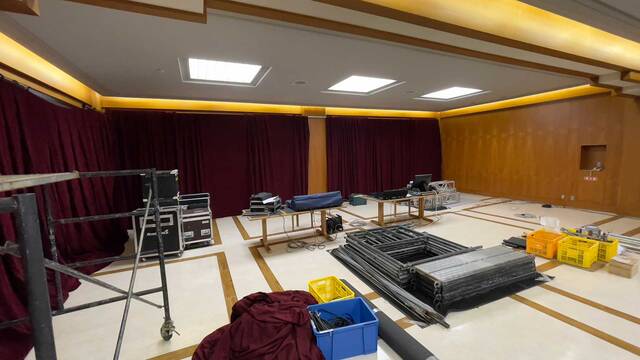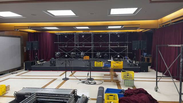 そして今年は『キャンパス内にライブハウスを作ったら熱いよね!』という事で、コンサートPA・コンサート照明・コンサート舞台の各コースで協力して、普段は食堂として使用している『職員食堂』をライブハウスに改装しちゃいました!